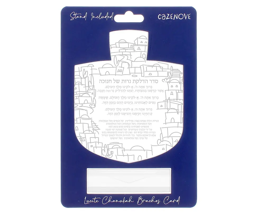 Lucite Chanukah Silver Brachos Dreidel Stand