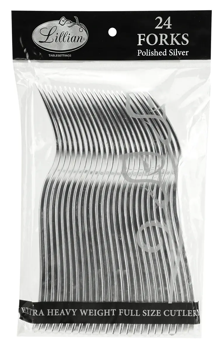 Polished Silver Hard Plastic Forks (24 Count)